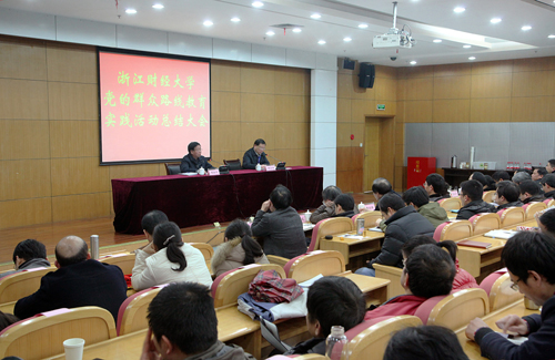 2月26日下午,我校在学术中心第二报告厅召开党的群众路线教育实践活动总结大会。校党委书记韩翼祥作总结报告,省委第19督导组副组长胡浙平作讲话。会上,韩翼祥指出,自去年7月以来,学校党委紧紧围绕“为民、务实、清廉”的活动主题,始终贯穿“照镜子、正衣冠、洗洗澡、治治病”的总要求,围绕“服务师生树新风,凝心聚力促发展”,聚焦“四风”,查找和解决问题,做到规定动作不走样,自选动作有特色,坚持从严从紧、不降...