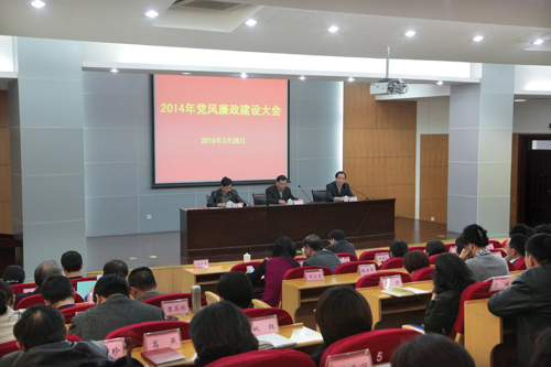 3月28日下午,学校召开党风廉政建设大会。校党委书记韩翼祥出席会议并讲话。校纪委书记朱根弟传达上级有关会议精神,并作2014年党风廉政建设大会工作报告。校领导、全体中层干部、各党总支(直属党支部)纪检委员参加了会议。会议由校长王俊豪主持。 会上,朱根弟首先传达了习近平总书记在中纪委十八届三次全会上的重要讲话精神和王岐山同志工作报告的主要精神,传达了夏宝龙书记在省纪委十三届三次全会上的讲话精神...