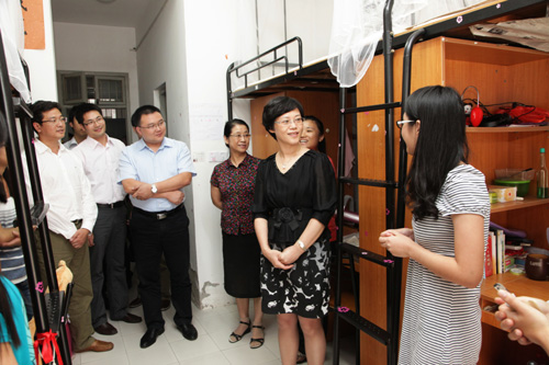 9月19日下午,团省委书记周艳、副书记朱斌及组织部部长斯力、学校部部长陈继胜、宣传部副部长张坚等一行到我校专题调研学校共青团工作。校党委副书记王宇航、校团委书记沈鑫泉等陪同调研,30余名青年师生代表参加了座谈。王宇航副书记代表学校对周艳书记一行来校调研表示热烈的欢迎,并简要介绍了学校办学基本情况和学校文明寝室建设工作等情况。 调研中,周艳书记充分肯定了学校共青团工作在校党委的正确领导下,紧密围...