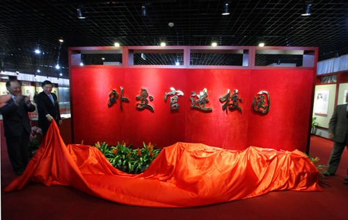 11月2日, 我校“外交官进校园”展览馆隆重开馆,中外外交官沙祖康大使及夫人、吴建民大使及夫人、吴思科大使、前巴勒斯坦国驻华大 使穆斯塔法·莎法日尼 博士 亲临现场为展览馆揭幕。 嘉兴学院党委书记胡建成,浙江工商大学副校长陈寿灿,我校党委书记韩翼祥、党委副书记朱根弟、副院长黄建新、原党委书记童本立等领导出席开馆仪式,仪式由校党委副书记王宇航主持。参加开馆仪式的还有学校相关职能部门工作人员、师生代...
