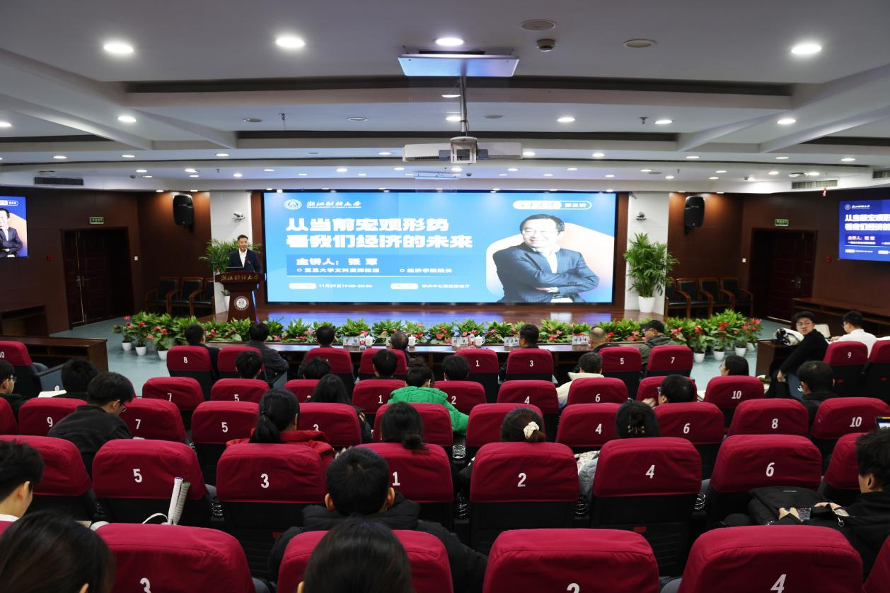 本网讯 11月29日,复旦大学文科资深教授、经济学院院长张军教授以“从当前宏观形势看我们经济的未来”为题,作客“崇实讲坛”第三讲,为我校师生带来了精彩演讲。校党委副书记程爽主持报告会。