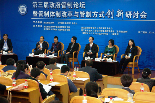 国家发展改革委、住房和城乡建设部、最高人民法院、中国城市规划设计研究院、中国社科院工业经济研究所、中国人民大学、复旦大学、东南大学、上海财经大学、辽宁大学、首都经济贸易大学、东北财经大学、江西财经大学、台湾政治大学、英国剑桥大学、新加坡国立大学、日本中央大学、中国社会科学出版社、《经济理论与经济管理》杂志社、光明日报、中国教育报和各媒体等单位100余人参加了此次论坛,近30位研究机构和高校的专家学者就十八届三中全会以来中国管制体制改革的热点问题和管制方式创新进行了深入探讨。