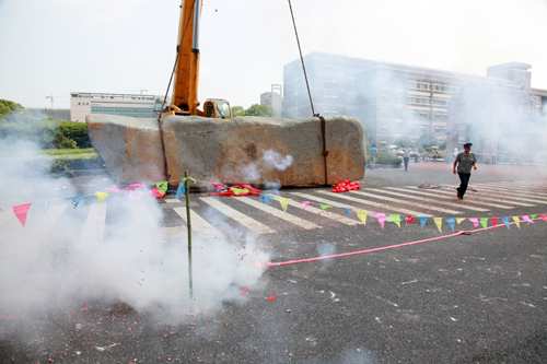 5月28日 学校大门新校名石进行吊装更换