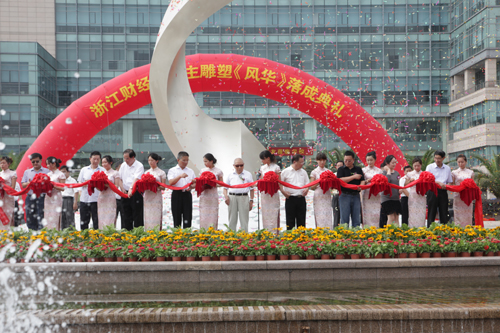 6月18日下午 学校举行胡惠康校友捐资的大型雕塑“风华”落成剪彩仪式