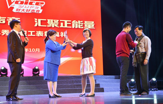 为深入推进“正作风、树教风、抓学风”主题教育,进一步弘扬优良师德师风,团结凝聚财大力量,营造集体干事创新创业的良好氛围,唱响不同时代、不同形式的“好声音”,10月27日下午,学校举办了第三届“财大好声音•汇聚正能量”暨优秀教职工表彰典礼。陈根芳、李金昌、钟晓敏、卢新波、陈金方、王奎泉、徐晓东等及各职能部门和各学院负责人亲临现场,与千余名教职工欢聚一堂,共同观看了这场音乐盛会。