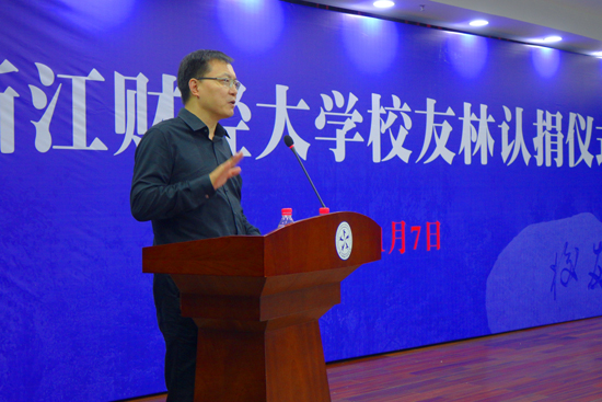 党委书记陈根芳向从四面八方汇聚一堂的校友表示热烈欢迎,对校友饱含深情的慷慨认捐表示真挚的感谢。他指出,感恩于心、铭志于树、寄情于林,校友认捐林不仅表达各位校友回馈母校的情感,更为在校学生树立了良好的榜样,使学生从校友林中感受到校友奋斗的感染力和感召力,有力发挥环境的育人作用,逐步积淀具有财大特色的校友教育文化。他表示,学校的发展与校友自身发展密切相关,“校友兴则母校兴,母校旺则校友旺”,财大与校友的鱼水之情、根土之谊充分被体现。