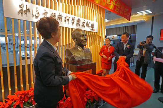 孙冶方经济科学基金会秘书长、文献馆名誉馆长李昭女士和浙江省社科联党组书记郑新浦一起为孙冶方塑像揭幕。
