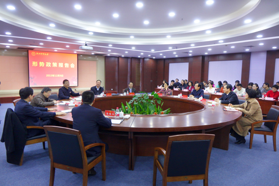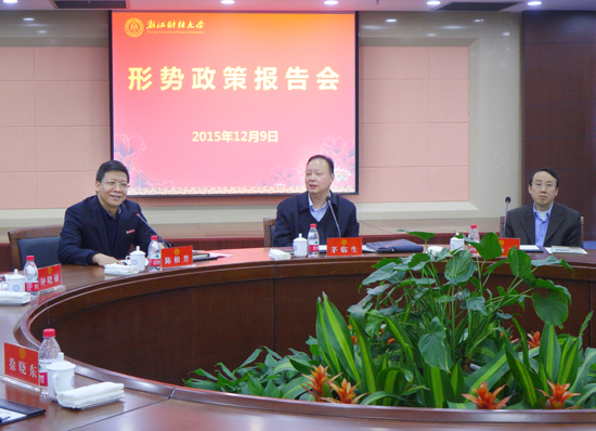 12月9日下午,省人大常委会党组书记、副主任茅临生来我校作党的十八届五中全会精神宣讲,并与师生代表座谈交流。省教育工委书记、教育厅厅长刘希平,校领导,相关职能部门和各学院主要负责人,师生代表等100余人参加了报告会。会议由校党委书记陈根芳主持。