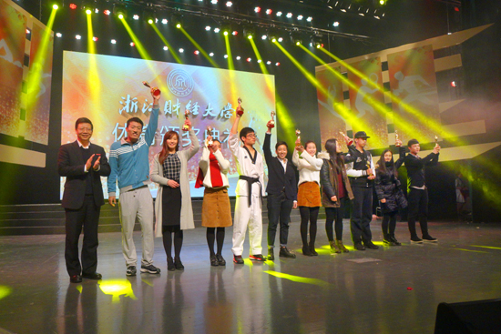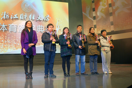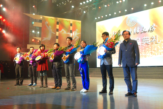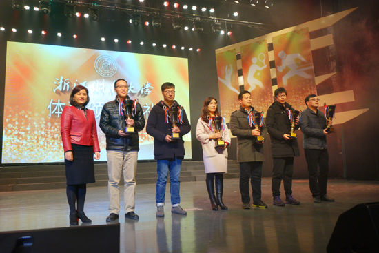 12月29日晚,校第二届体育颁奖典礼在文化中心剧场隆重举行。省委教育工委副书记、教育厅副厅长鲍学军,前国家游泳队总教练、浙江体育职业技术学院院长张亚东,省教育厅体卫艺处处长、省大学生体育协会秘书长李建章,省大学生体育协会副秘书长姜丽,校领导,校体委全体成员,已退休体育工作者和师生代表等出席了本届颁奖典礼。