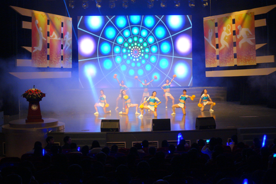 此次颁奖典礼,重在表彰为学校体育发展中做出了突出贡献的单位和个人。整个颁奖典礼气氛热烈,形式新颖,过程精彩,洋溢着丰收的喜悦,在省内高校中也属开创之举。典礼将视频短片、颁奖及表演这三种元素有机结合在一起,通过短片让现场观众了解获奖选手的风采,而活力四射的健美操表演,唯美的瑜伽展示,新颖的运动队走秀,豪迈的“刀剑如梦”,深情的“致运动员”,炫酷的“跆旋风”等表演,穿插于颁奖环节中,一次次地向现场观众展现了体育的魅力,营造了良好的校园体育文化氛围。