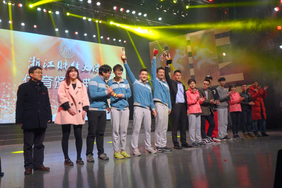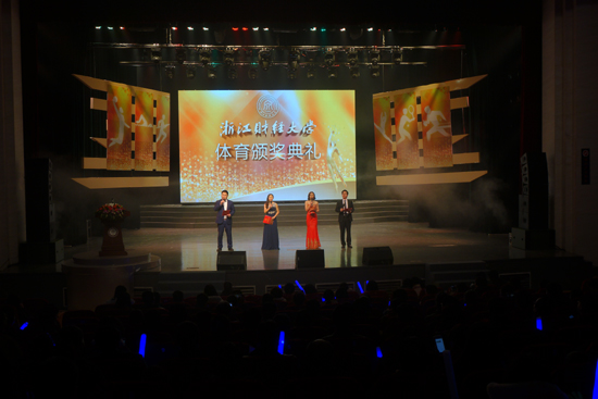 校党委副书记、体委主任钟晓敏代表学校致辞,向出席颁奖典礼的领导和嘉宾表示了欢迎,向获奖集体和个人表示了祝贺,同时他提到,学校素有重视体育、崇尚体育的优良传统,“以人为本、健康第一”的理念不断深入人心。在省第十四届大学生运动会取得辉煌成绩,隆重推出今晚的体育颁奖典礼,意义非凡,目的在于表扬先进,突显贡献;树立典型,激励来者;弘扬体育精神,展示励志风采;充分发扬体育对学生思想品德、智力发育、审美素养和健康生活方式形成所具有的不可替代的育人作用,进一步开拓我校的体育教育事业,为实现校第一次党代会提出的奋斗目标,实现财大更加美好的明天做出应有的贡献。