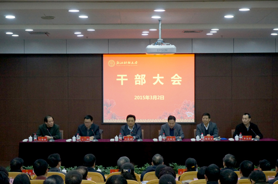 3月2日,学校召开全校干部大会,省委组织部副部长、省委两新工委书记庄跃成,省教育厅副厅长、省委教育工委副书记汪晓村等领导来校宣布干部任免决定,李金昌同志任买球体育官方网站校长、党委副书记。