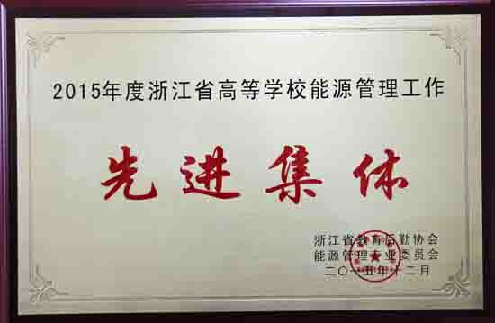 1月6日至8日,浙江省教育后勤协会能源管理专业委员会2015年年会在宁波召开。我校荣获“浙江省高校能源管理工作先进集体”荣誉称号。