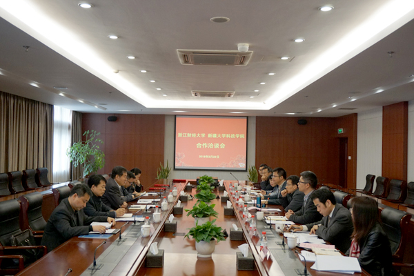 校党委副书记卢新波代表学校对客人的到来表示热烈欢迎,杨东禄介绍了新疆大学科学技术学院阿克苏校区筹建及援疆教师需求情况。随后,双方围绕人才培养、学科、教学及图书信息资料建设等方面进行了深入交流,并签订了对口支援合作协议。
