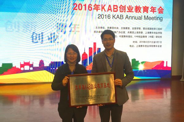本网讯 3月31日至4月1日,由共青团中央、全国青联、全国学联、联合国国际劳工组织共同主办的2016年KAB创业教育年会在上海举行,会上我校被授予大学生KAB创业教育基地。