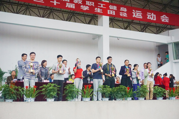 经过紧张激烈的角逐,机关三、法学院、金融学院分工会分列教职工健身运动会团体总分前三名,经济学院等8个分工会获“体育道德风尚奖”荣誉称号;会计学院、金融学院、工商管理学院分列学生田径运动会团体总分前三名。其中,会计学院俞佳萍、法学院王雨晴成功打破我校女子标枪的校田径最高纪录。财政税务学院等5个学院获 “体育道德风尚奖”荣誉称号,国际学院获“特别参与奖”荣誉称号。