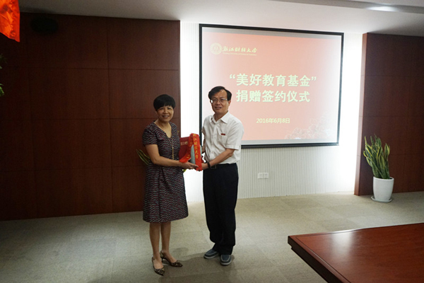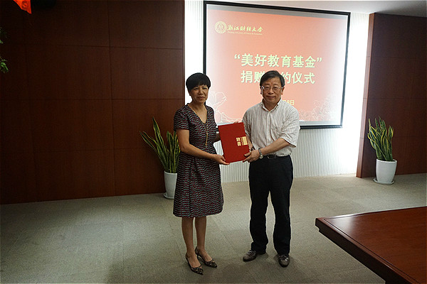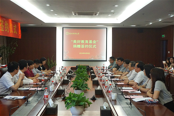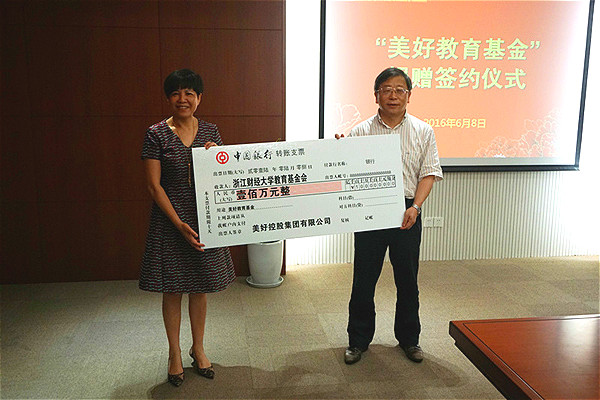 本网讯(通讯员 王钰菡)6月8日下午,由美好控股集团捐赠设立的“美好教育基金”签约仪式在我校下沙校区举行。美好控股集团董事长沈月华与钟晓敏、黄建新等校领导及中国金融研究院、校教育基金办等负责人和部分师生代表等参加了签约仪式。