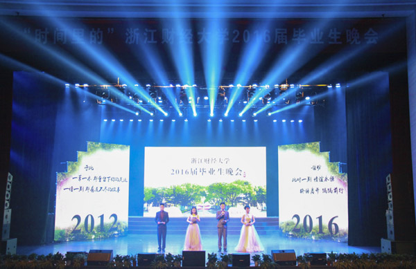 本网讯(通讯员 许乐 徐艳妍)6月12日晚,“时间里的”2016届毕业演出在文化中心剧场隆重举行。李金昌、钟晓敏、陈金方、王奎泉、励如孟、徐晓东、邵毅平等领导与学校各职能部门、单位的领导,校友、教师及毕业生代表等一同观看了演出。