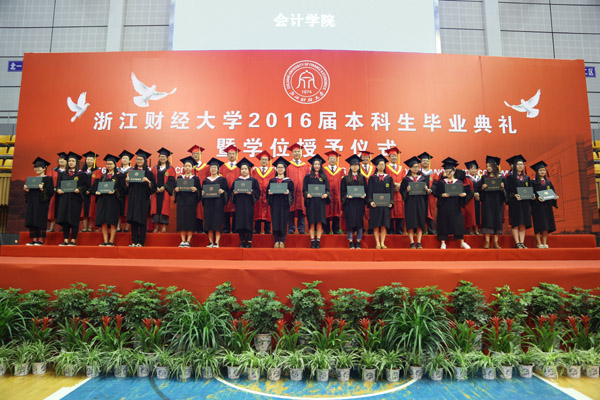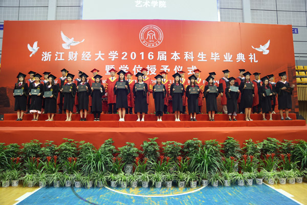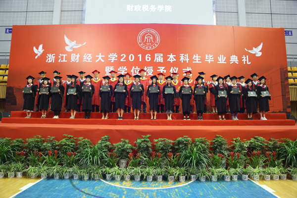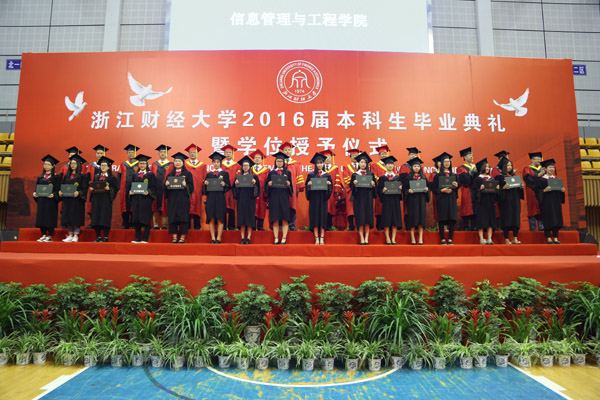 本网讯(记者 赵蕾)6月13日,学校在西体育馆隆重举行2016届本科毕业生学位授予仪式。李金昌、钟晓敏、黄建新、陈金方、励如孟、徐晓东等领导与各学院领导、导师代表和2016届全体本科毕业生出席了仪式。学位授予仪式共分为四场,由校党委副书记卢新波主持。