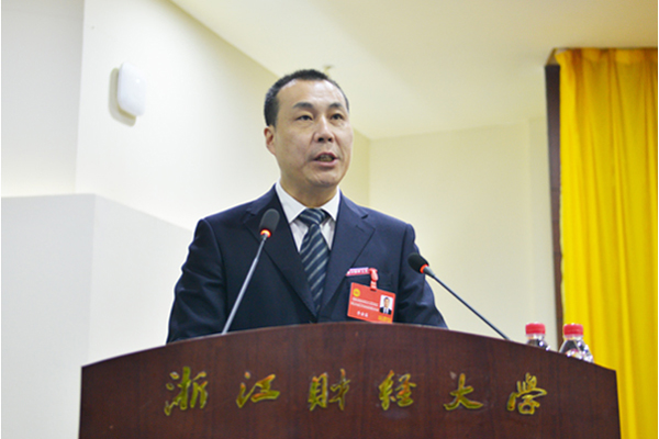 大会上,校长钟晓敏作了题为《凝心聚力谋发展 砥砺前行谱新篇 为加快建设高水平创新创业型财经大学而努力奋斗》的工作报告。报告系统回顾了上一届“双代会”召开以来学校的工作,实事求是地总结了过去三年以来学校工作取得的成绩与不足,全面分析了“十三五”时期学校发展面临的形势,指出了学校今后四年的工作任务:一是深化创新创业型人才培养体系改革,进一步凸显“买球”育人品牌;二是全力申报一级学科博士点,进一步彰显特色学科优势;三是以地方经济社会需求为导向,进一步激发科研创新活力;四是不断增强人才引育力度,进一步提升师资队伍整体实力;五是深化拓展对外交流合作,进一步提升国际化办学水平;六是全面落实立德树人根本任务,进一步优化学风教风作风;七是深入开展校园文化品牌建设,进一步凝练“买球精神”;八是不断加强校友工作,进一步汇聚社会力量支持学校办学;九是持续完善学校治理结构,进一步提升教职工获得感;十是不断强化公共体系建设,进一步提升服务保障能力。