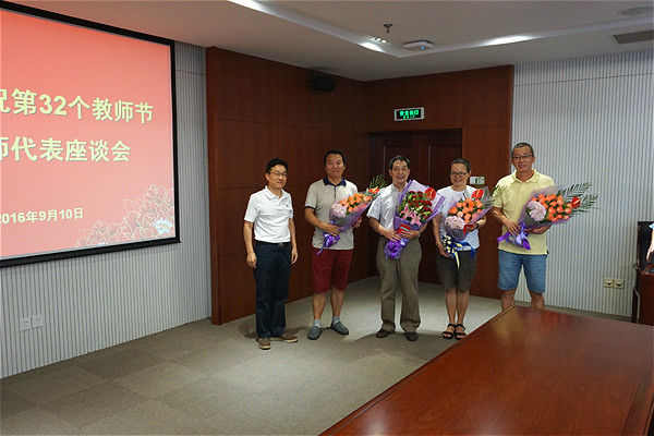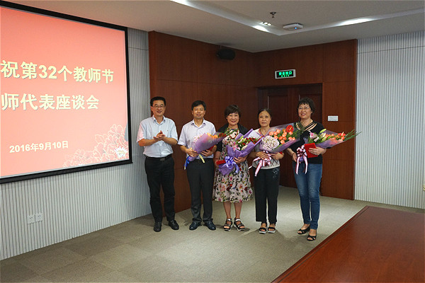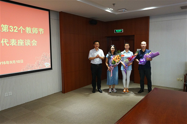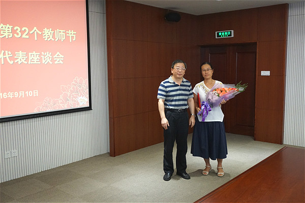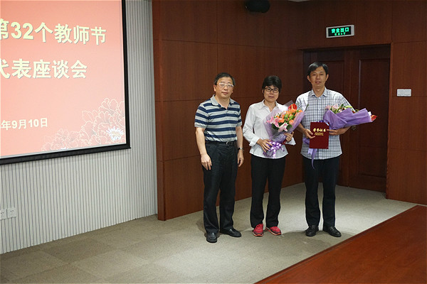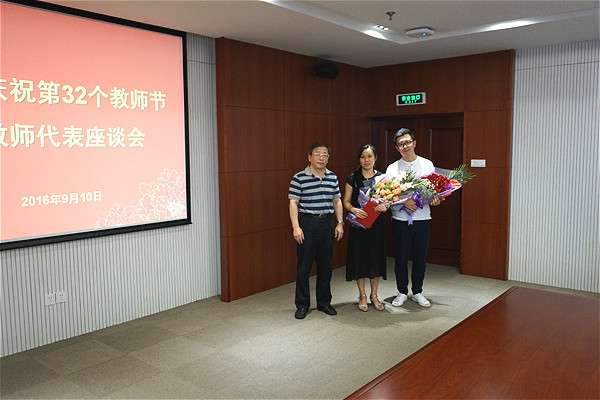 本网讯(记者 焦文)9月10日,时值第32个教师节,学校在行政楼412会议室召开庆祝第32个教师节教师代表座谈会,表彰省高校优秀教师、省高校优秀辅导员、省“三育人”先进个人、省青年教师教学技能竞赛获奖教师、任教30年教师代表、校风华奖(进校工作满30年教职工)获得者代表等。钟晓敏、卢新波、徐晓东等领导为获得荣誉的教师代表颁发了证书。会议由副校长励如孟主持。