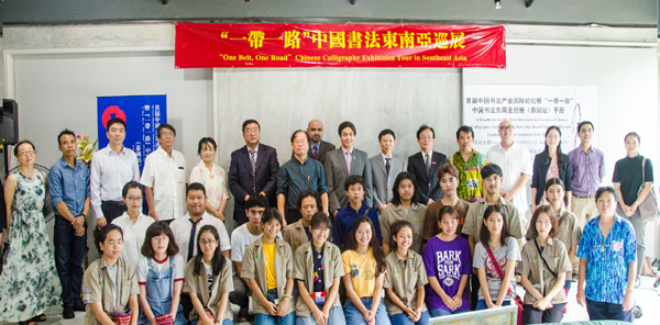本网讯(通讯员 徐文平)近日,由泰国东方大学、北美中国书法协会、浙江省书法家协会教育委员会、浙江省教育书法协会等单位主办的“一带一路”中国书法东南亚巡展在泰国东方大学举行。我校艺术学院14级美术学专业张晋玮、章峻豪、黄秋燕、毛腊梅、雷鑫鑫、叶铖茜、雷青、季婧等8位同学的书法作品入展。其中,张晋玮同学受邀赴泰国参加展览开幕式。