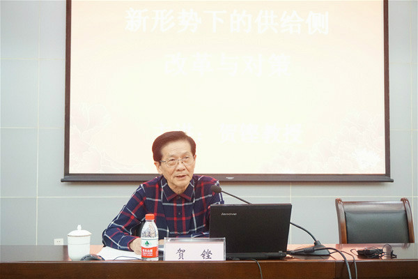 贺铿教授以生动的事例、具体的数据,深入浅出地解读了当前世界经济、欧美经济、国内经济等众多热点问题,分析了新兴国家跨越式发展的历程及当前经济下滑的原因,深刻解读了新形势下中国供给侧改革的目的、重点领域及保障措施。贺铿教授认为,供给侧改革主要是要引导生产要素合理流动与科学组合以提高全要素生产率,改革的重点领域是财政税收、收入分配及价格机制,应从削减财政开支、大规模减税、控制货币发行、国企与土地制度改革等方面着手推进。报告具有很强的针对性和启发性,进一步深化了我校师生对新形势下中国供给侧改革重要意义的认识,让在场师生受益匪浅。
