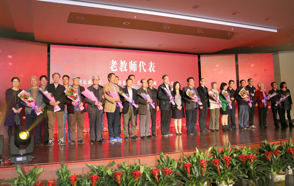 在一曲《老师我想你》的歌声中,校友代表上台为老教师献花,表达了他们对恩师的感激之情,脉脉温情使在场的许多校友回想起学生时代的点点滴滴,不禁热泪盈眶。