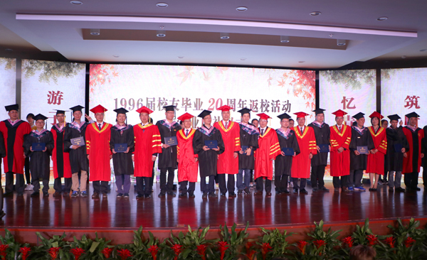 本网讯(记者 赵蕾)11月5日上午,我校1996届校友毕业20周年返校纪念活动暨学业成礼仪式在下沙校区隆重举行。校领导李金昌、钟晓敏、卢新波、黄建新、陈金方、励如孟、徐晓东、邵毅平出席大会。黄学规、吴忠希、楼远等老教师代表,校友最想见的老师,学校相关部门及各学院负责人,1996届校友及师生代表近600人参加了大会。