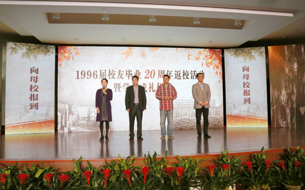 “我代表班级向母校报到!感谢母校为我们创造了一个回忆往昔的美好机会,和曾经教过我们的老师相聚,和曾经一起学习、生活的同学畅聊叙旧……我们谨记母校教诲,用实际行动为母校争光!”在一片热烈的掌声中,12名各返校班级代表逐一“向母校报到”。20年前的回忆以激动、感慨、热情的方式一一在台上呈现出来。