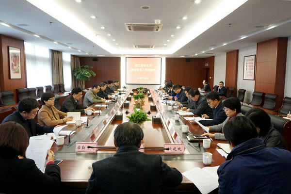 本网讯 为全面推进学校综合改革方案的贯彻落实,11月22日下午,学校召开综合改革工作部署会。李金昌、钟晓敏、黄建新、陈金方、励如孟等校领导出席会议。会议由校长钟晓敏主持。