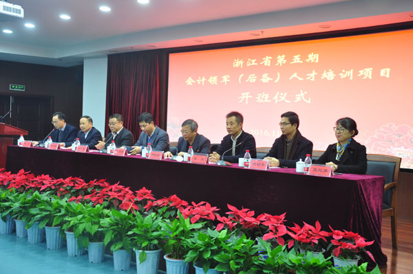 本网讯(通讯员 邓川)11月26日,浙江省第五期会计领军(后备)人才培训班开班典礼在我校下沙校区举行。校长钟晓敏、省财政厅会计处处长江中亮、省委人才办副主任张朝雄、省人力社保厅专技处处长程爽等出席开班典礼。