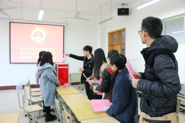 江干区人大代表换届选举工作启动以来,学校党委高度重视,专门成立领导小组,严格按照江干区人大、白杨街道等部门有关要求,认真圆满完成了选民登记、候选人推荐考察、候选人与选民见面等各项程序和任务。按照规定,经广泛宣传动员,第134选区共划分30个选民小组,登记师生选民5517人。选举当日,选区召开了江干区人大代表换届选举第134选区选举大会启动仪式。启动仪式后,各单位选民按照要求,到各投票站凭选民证选举投票。整个选区共发放选票5164张,收回有效票5138 张,我校赵海利获得有效票3133张。