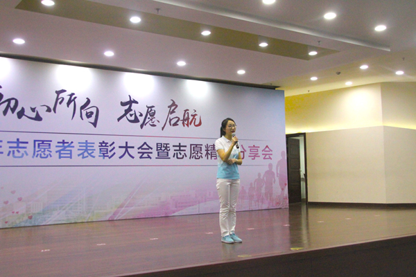教师志愿者代表蒋超、学生志愿者代表方思乃先后上台发言。