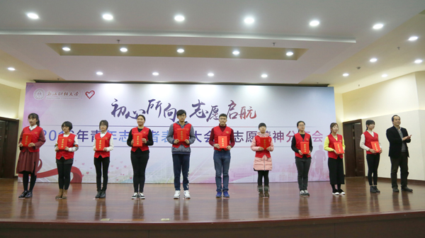 本网讯 12月15日下午,我校青年志愿者表彰大会暨志愿精神分享会在下沙校区隆重举行。钟晓敏、陈金方、王奎泉、励如孟等校领导出席活动,学生处、人事处、保卫处、团委等相关职能部门负责人,各学院分管学生工作书记和600余名师生代表等共同参加了活动。