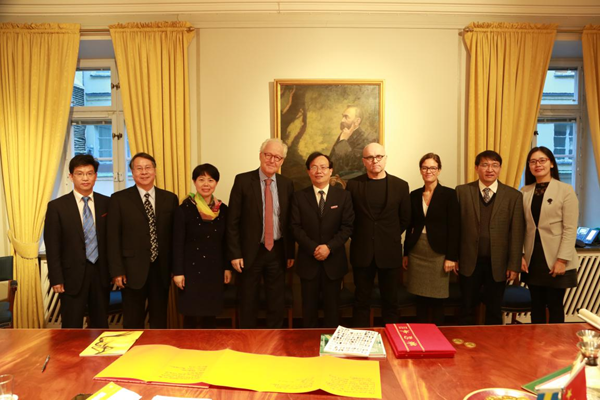 本网讯 12月14日,副校长黄建新率我校代表团一行6人,在考察北欧高校期间应邀访问了诺贝尔基金会总部,受到基金会主席Lars Heikensten和首席法务官Erika Lanner的热情接待,双方进行了友好交流。