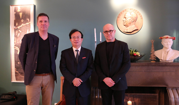 我校代表团一行还访问了瑞典林奈大学。该校校长史蒂芬•黄与我校代表团亲切会晤,并介绍了该校的办学情况。黄建新向史蒂芬介绍了我校的基本情况。随后,双方就学生互派、“3+1”、“1+1”硕士项目、合作科研等方面深入交谈。期间,代表团还与该校经济系主任拉尔斯•贝赫伦、国际部主任卡米拉•伦德奎斯特、项目主任彼得森教授就财务管理、物流及供应链管理等专业的本硕项目合作进行了讨论。