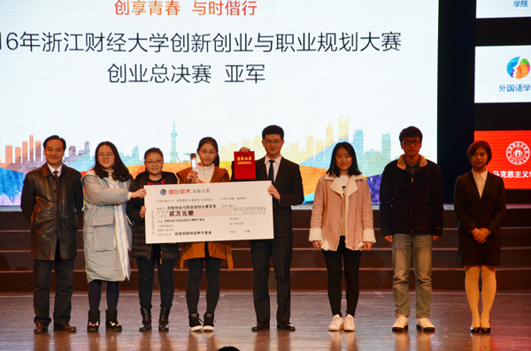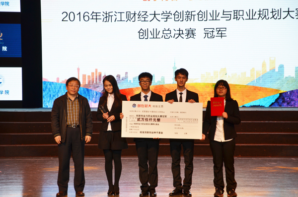 本网讯(通讯员 林健林)12月16日晚,学校2016创新创业与职业规划大赛总决赛暨颁奖典礼在文化中心举行。校长钟晓敏,全国财经院校创新创业协作组秘书长、上海财经大学创业学院执行副院长刘志阳、杭州市就业管理服务局创业指导处副处长徐华,和达高科、猿人公社、超校联盟等社会投资机构和众创空间代表以及学校相关职能部门负责人、各学院分管创新创业工作领导等出席活动。