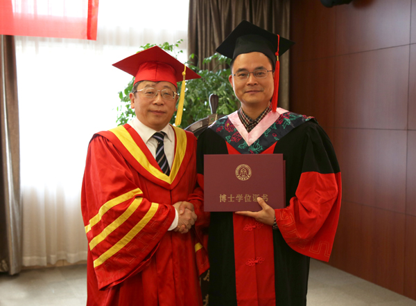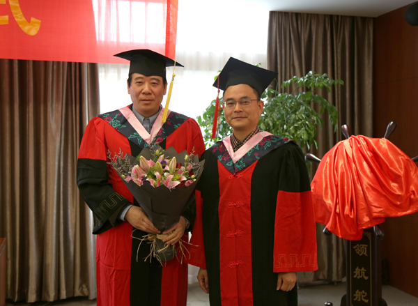 研究生院院长张雷宝宣读了博士毕业和学位授予文件,钟晓敏为宋炳坚颁发博士毕业证书和学位证书,并为其拨穗。