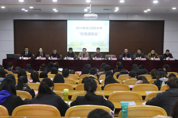 本网讯(通讯员 陈炜)12月27日上午,由校学生会牵头,全校各学生组织共同参与的2016年学校第一次学生校情通报会在下沙校区召开。校党委委员、宣传部部长徐晓东,教务处、学生处、资产处、校园建设处、保卫处、后勤服务中心、团委、体育部、紫元公司等相关职能负责人和全校学生干部、党员、普通学生代表200余人出席了会议。会议由校学生会主席宋元鹏主持。