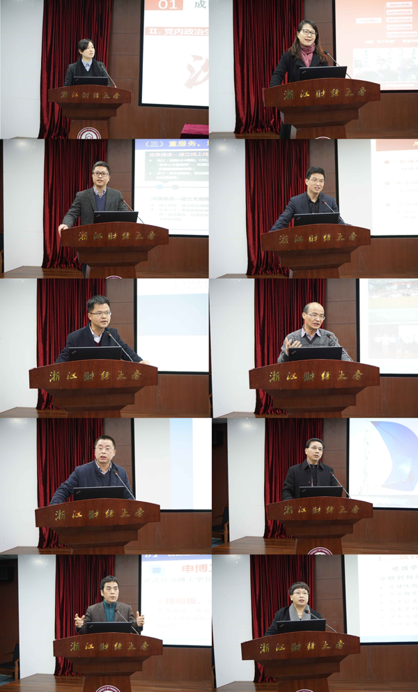会上,组织部、人事处、教务处、科研处、研究生院、公共管理学院、会计学院、工商管理学院、经济学院、外国语学院等十个单位作了交流发言。