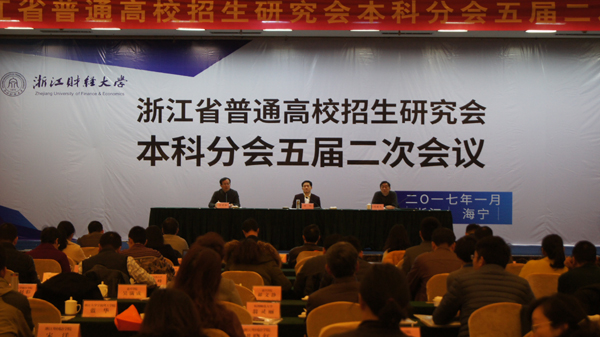 本网讯(通讯员 金国权)1月16日至1月18日,由我校承办的浙江普通高校招生研究会本科分会五届二次会员大会在海宁顺利召开。省委教育工委委员、省教育考试院院长孙恒,省教育考试院副院长冯成火,省教育考试院计划发展处副处长应朝帅等出席会议,来自全省50余所高校120余名招生一线老师参加了会议。副校长黄建新主持会议并致辞。