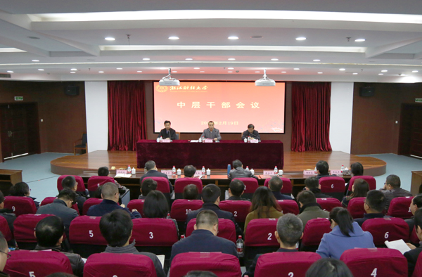本网讯 2月19日上午,学校召开中层及以上干部会议,传达十八届中央纪委七次全会精神,全面部署学校2017年度工作。全体中层及以上领导干部参加了会议。会议由校党委书记李金昌主持。
