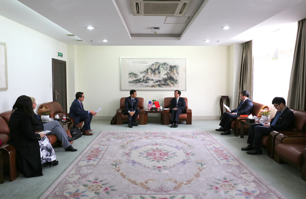本网讯 3月28日,美国加州大学河滨分校商学院国际部主任陈少辉、副主任塔姆拉·约翰逊、招生总监马克·埃斯特拉达一行访问我校。副校长黄建新会见了来访客人,国际交流合作处负责人参加会见。
