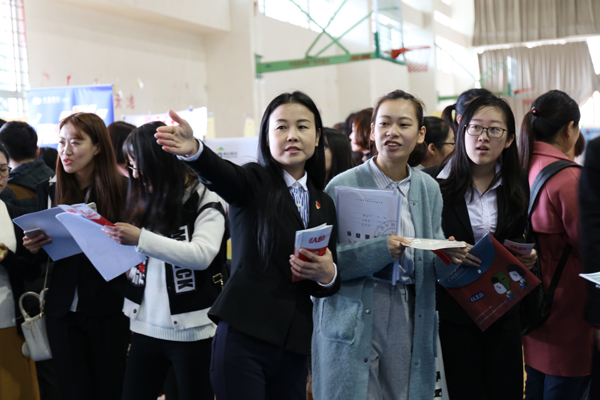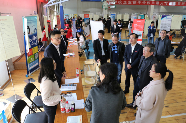 本网讯 3月28日,2017届毕业生春季大型招聘会在我校下沙校区举行。钟晓敏、黄建新等校领导亲临现场指导工作,与用人单位进行了亲切交谈,详细了解了用人单位的人才需求和学生应聘情况。