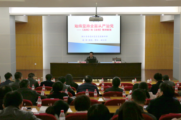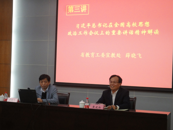 围绕培训内容,校党委书记李金昌结合自身体会和学校发展实际,以“坚持用好批评与自我批评的武器 促进学校事业更好更快发展”为主题给学员们上了生动一课。此外,学校还邀请了浙江省委党校徐彬教授作了题为“坚持全面从严治党—《准则》和《条例》精神解读”的主题报告;浙江省委教育工委宣教处处长薛晓飞解读了习近平总书记在全国高校思想政治工作会议上的重要讲话。三位领导专家从不同角度深入解读了十八届六中全会精神和习近平总书记在全国高效思想政治工作会议上的重要讲话精神,深化了对十八届六中全会精神的重大政治意义、理论意义和实践意义的认识,对准确把握时代脉络,努力推动学校各项事业改革发展具有重要的指导意义和积极启示,提振了广大干部干事创业的精气神。培训除安排专题辅导外,还开展了网络自主学习、分组讨论和汇报交流等内容,取得了较好的培训效果。