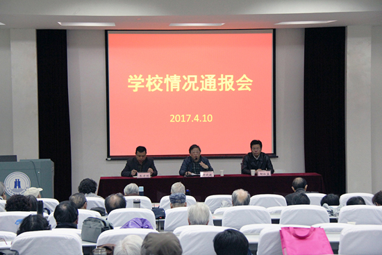 本网讯(通讯员 周红光)4月10日,学校在文华校区召开离退休老同志校情通报会。校长钟晓敏、副校长励如孟出席会议,党校办、离退休工作处负责人及200余名离退休老同志参加情况通报会。