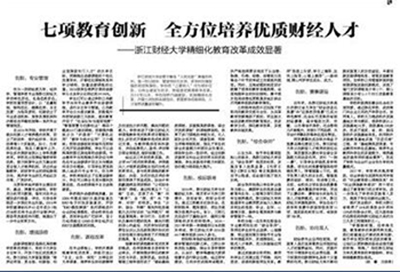 4月12日,中国教育报以《七项教育创新 全方位培养优质财经人才》为题,从专业管理、选修课程、课程改革、校际联考、综合导师、赛事建设、协同育人等七个方面大篇幅报道了我校深耕内涵建设,实施精细化改革,教育教学及人才培养质量成果明显,在社会引起了强烈反响。