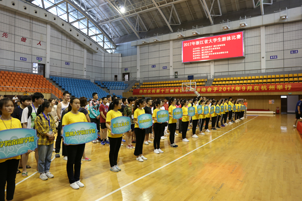 本网讯 5月19日上午,2017年浙江省大学生游泳比赛开幕式在我校下沙校区体育馆举行。