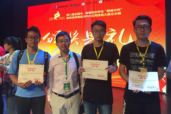 本网讯(通讯员 邹昊萌 彭毅)近日,第八届全国中、高等院校学生“斯维尔杯”建筑信息模型(BIM)应用技能大赛总决赛在杭州举行。来自浙江大学、重庆大学、四川大学等450余所高校的457支代表队近2300人参赛。我校公共管理学院工程管理专业本科生邹昊萌、姜儒奕旻、李喆、庄珍珍、单其一组成的菜园BIMer队,在彭毅老师的指导下,经过层层角逐,最终荣获本科组全国全能二等奖。同时,还获得本科组工程设计专项一等奖、绿色建筑分析专项二等奖和工程造价专项三等奖。